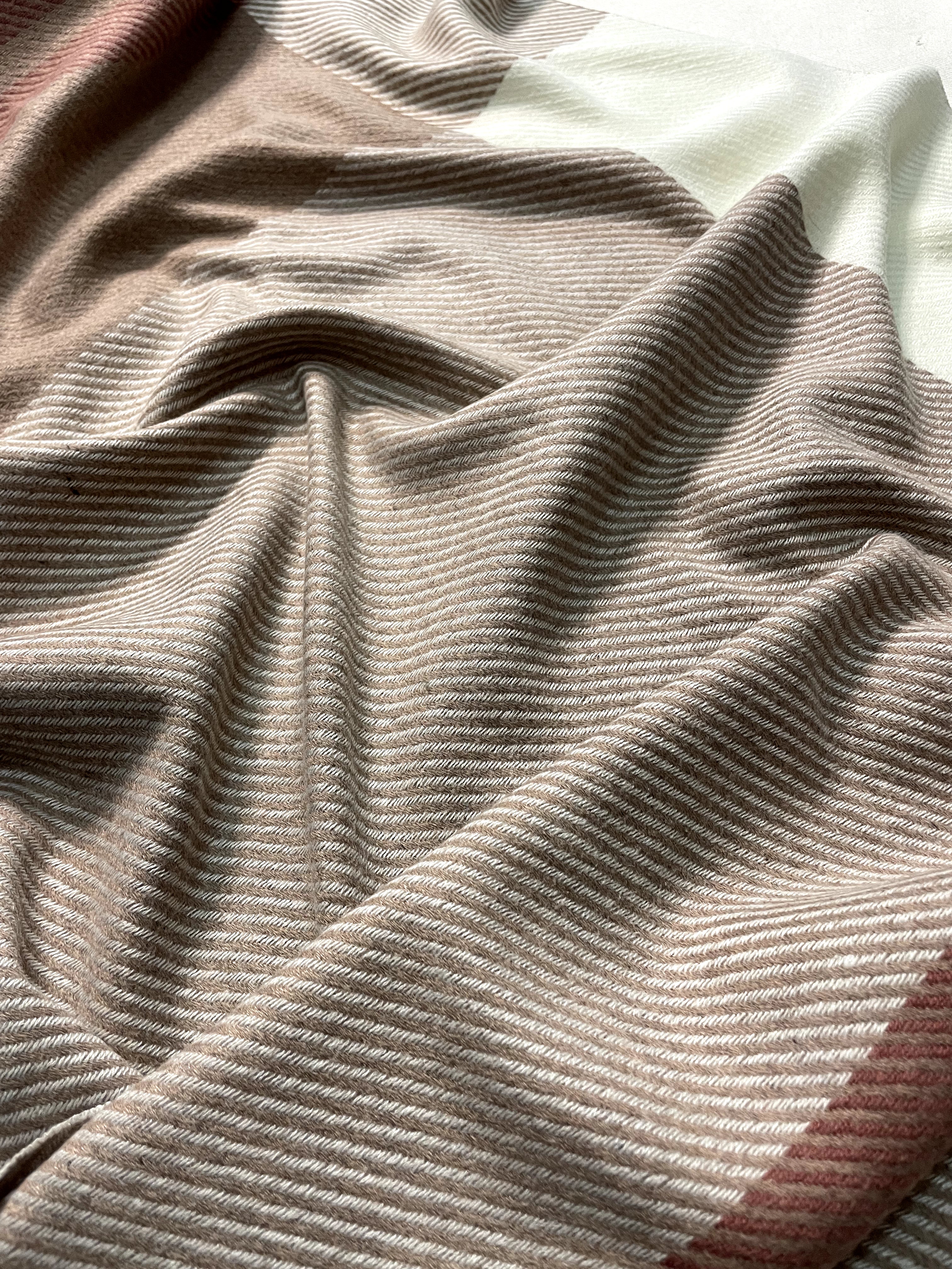 Featuring a sophisticated taupe base accented with ivory checks and subtle stripe detailing, the design reflects classic styling with a modern sensibility. The neutral palette makes it easy to pair with coats, sweaters, kurtas, and shawls, seamlessly transitioning from casual daytime looks to polished evening ensembles. Delicately finished fringed edges add a touch of artisanal charm.