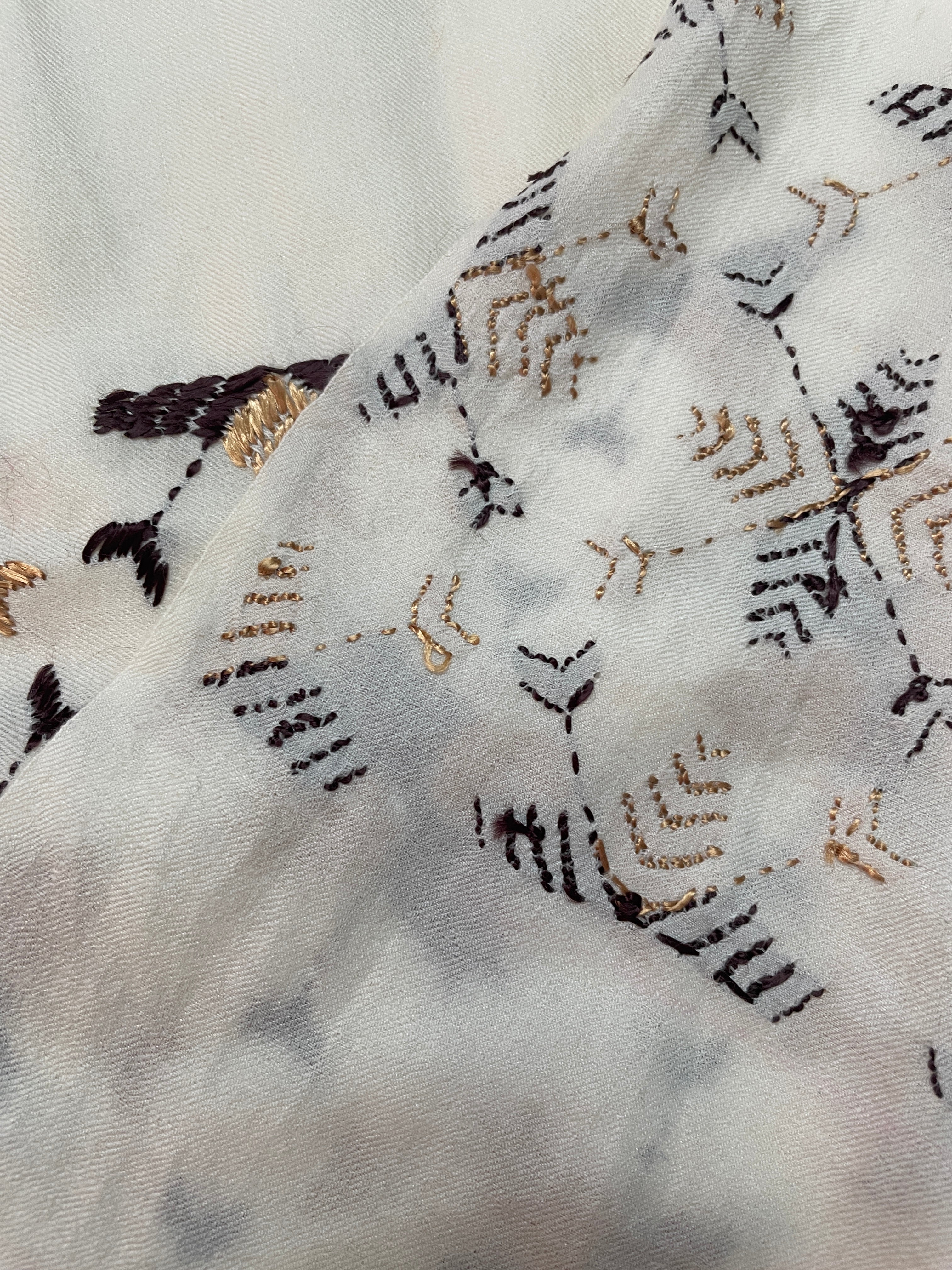Phulkari Hand-Embroidered Cream Stole with geometric Pattern – Ethnic Wrap