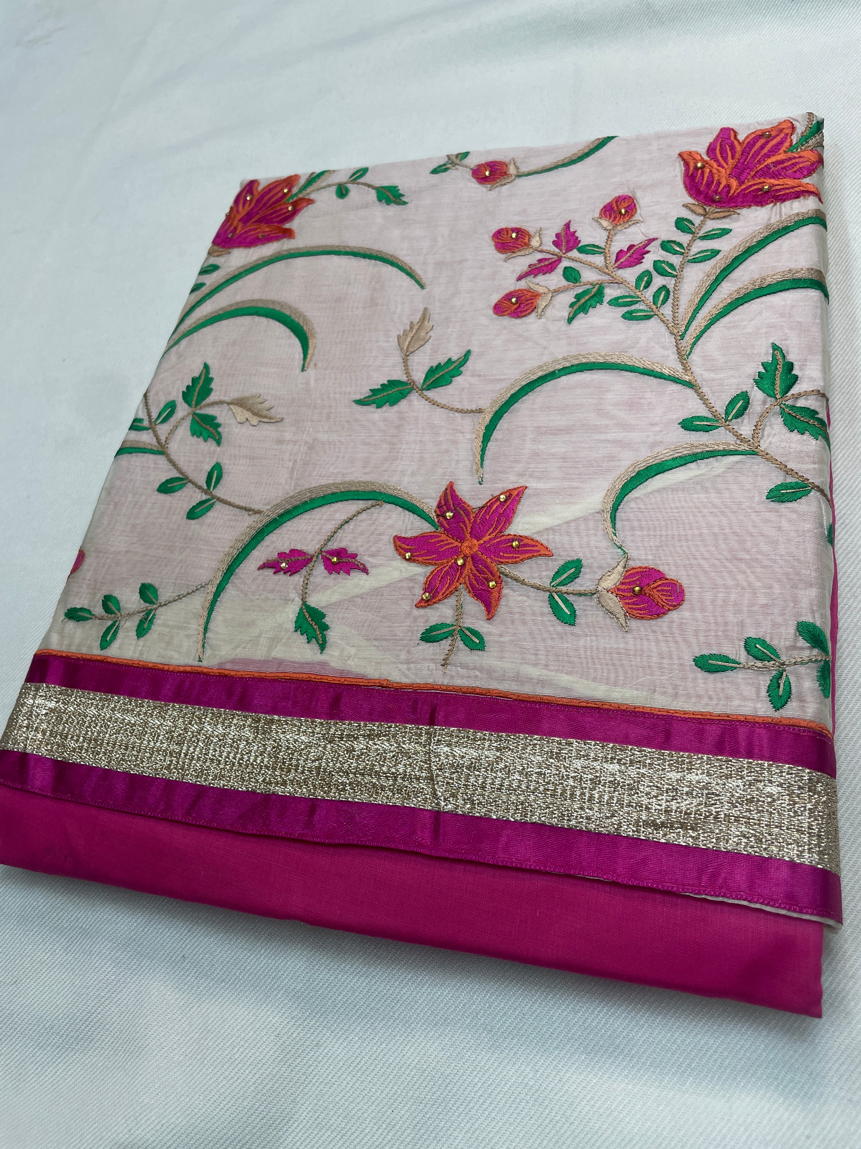 The Amritsar Store Chanderi Embroidered Unstitched Suit with Dupatta