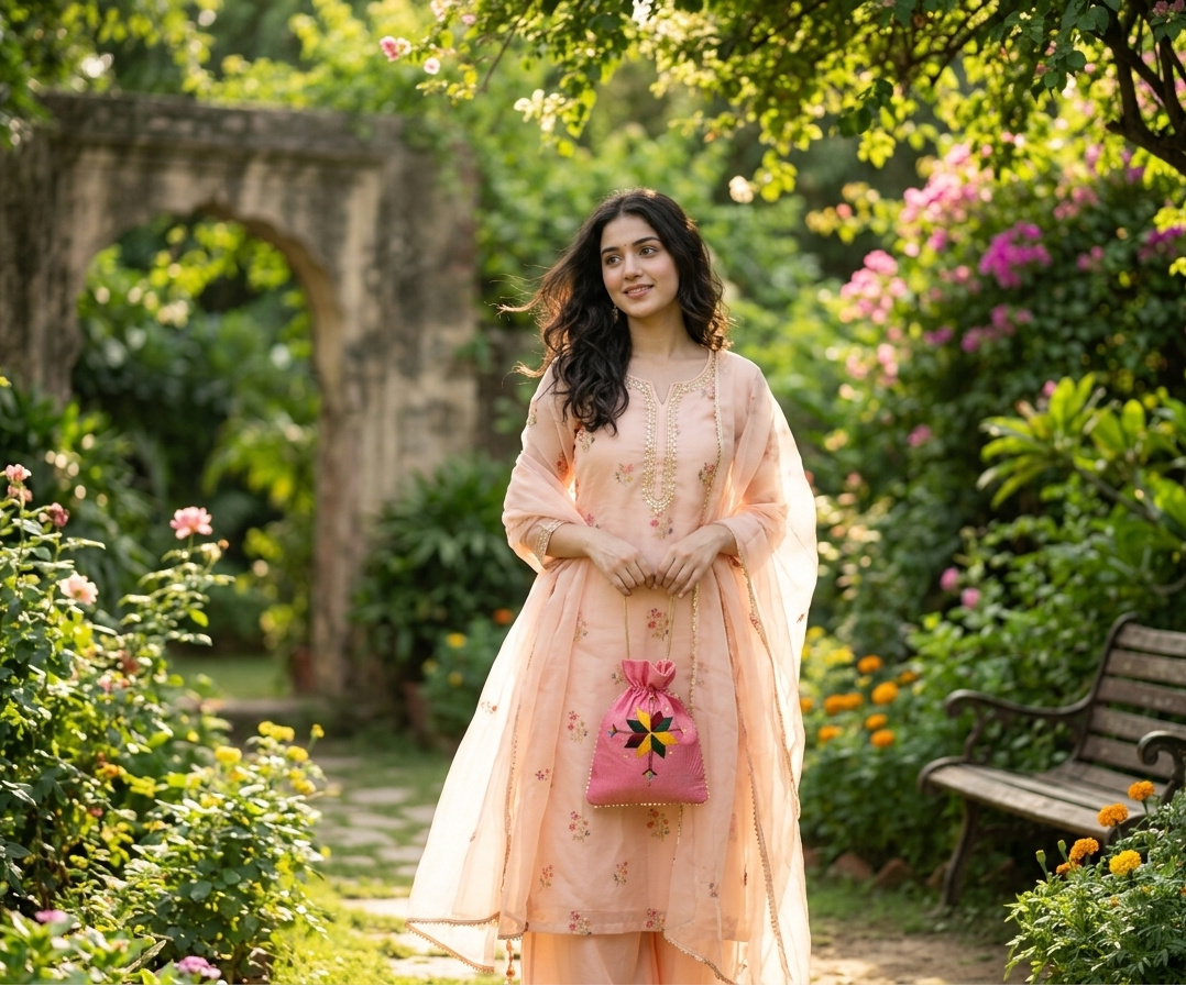 Whether paired with ethnic wear for weddings, festive occasions, or casual traditional looks, this potli bag adds a graceful charm to your outfit.