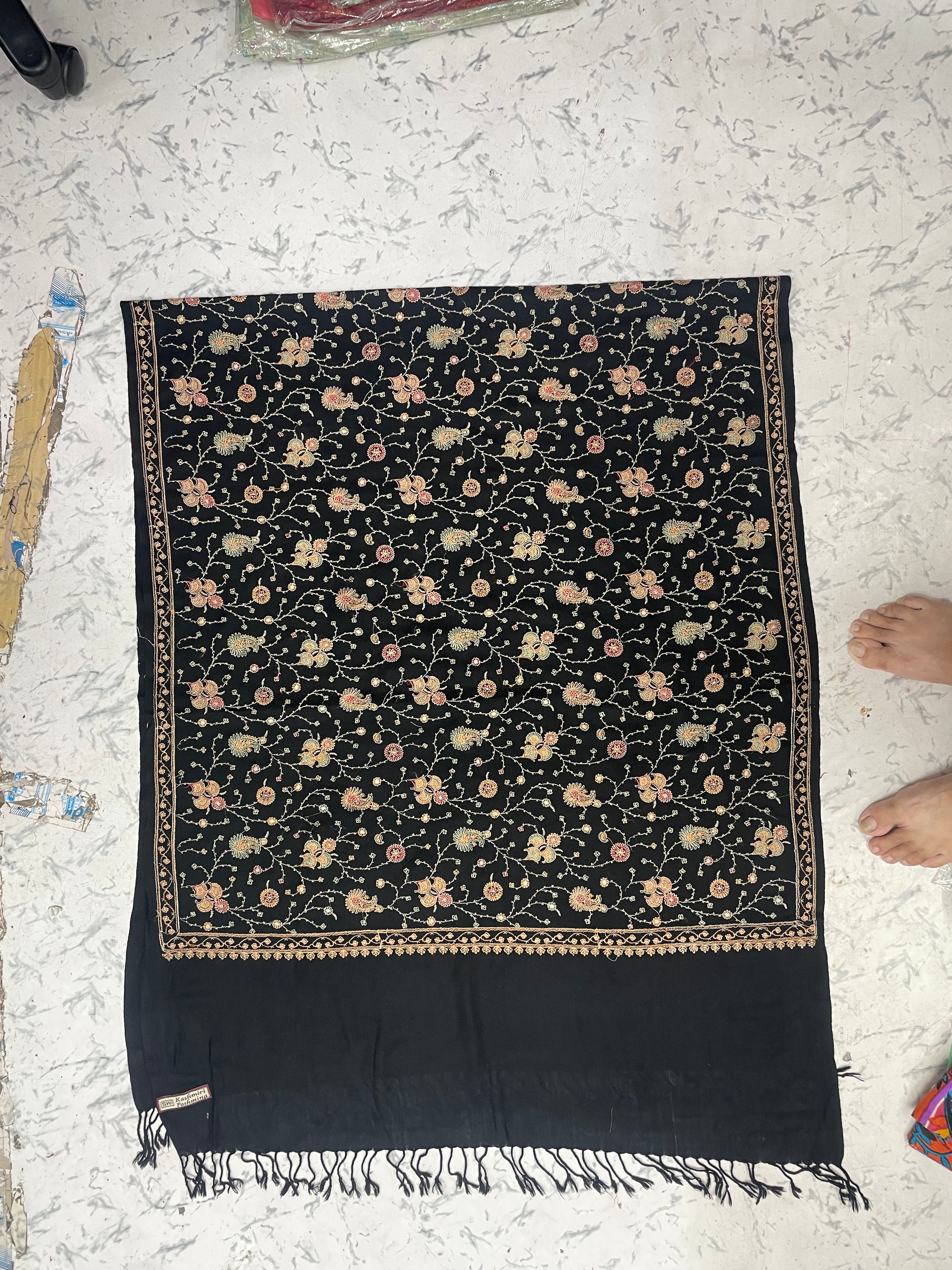 The Amritsar Store Womens Black Hand Embroidered Stole – Elegant Wool Wrap for Women