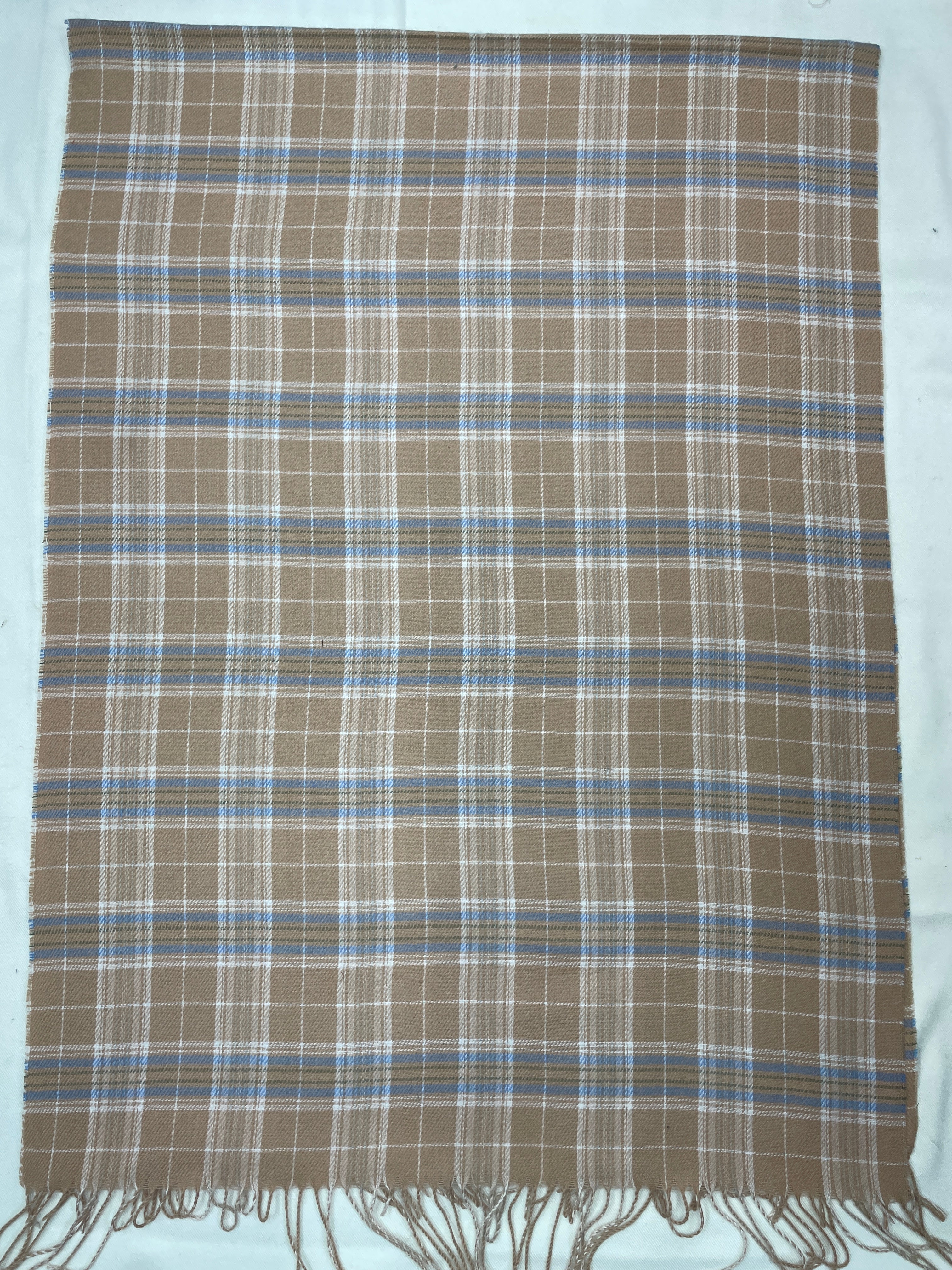 The shawl features a classic checkered pattern in rich shades of brown and deep blue, creating a sophisticated color combination that complements a wide range of outfits. The subtle interplay of these hues adds depth and visual interest while maintaining a timeless aesthetic that never goes out of style. Whether draped over your shoulders or wrapped around your neck, this checkered design effortlessly elevates your winter wardrobe, making it a must-have staple for fashion-conscious individuals.