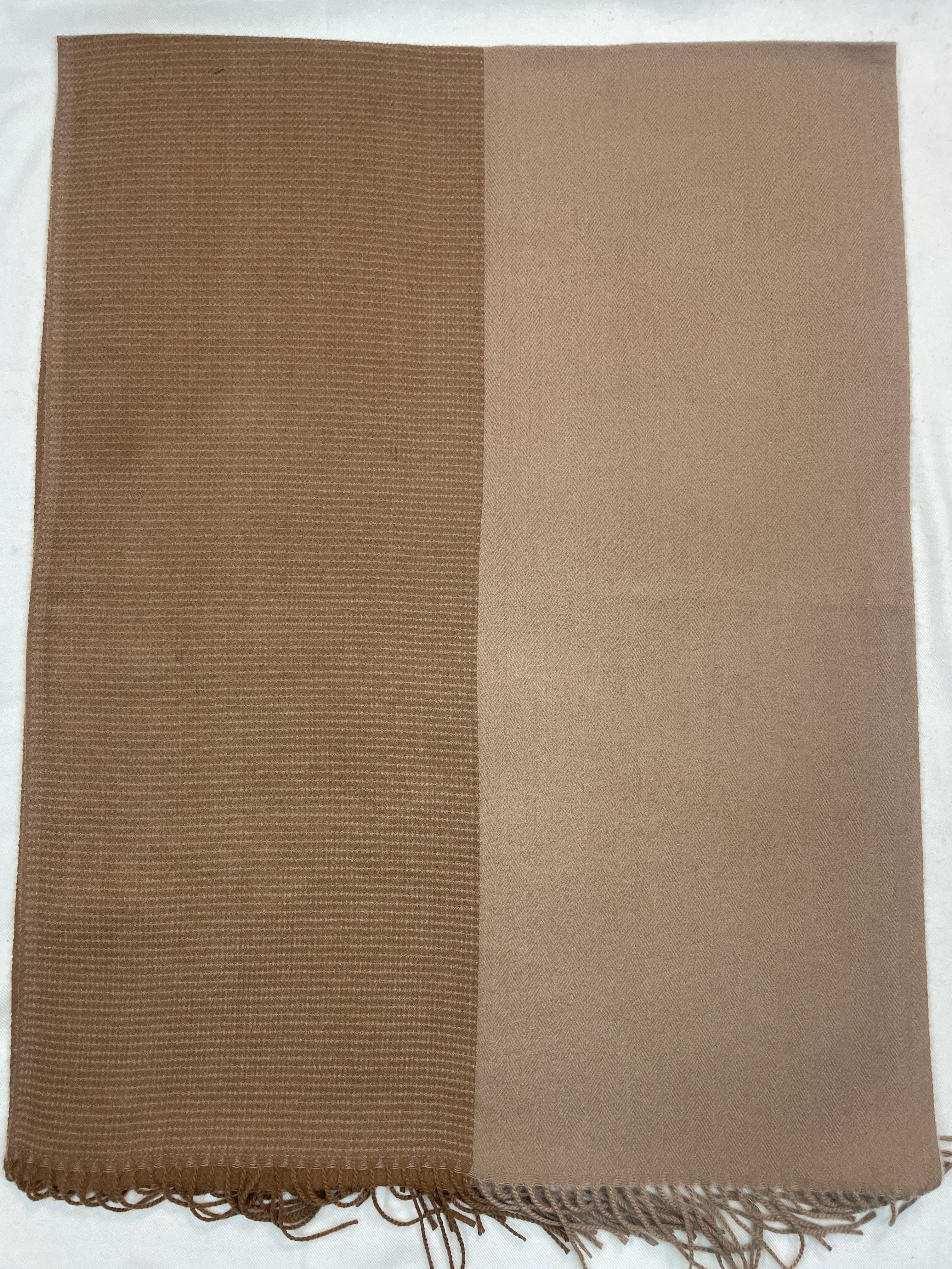 The Amritsar Store Elegant Camel Brown Two-Tone Winter Scarf – Soft Cozy Wrap with Fringed Edges
