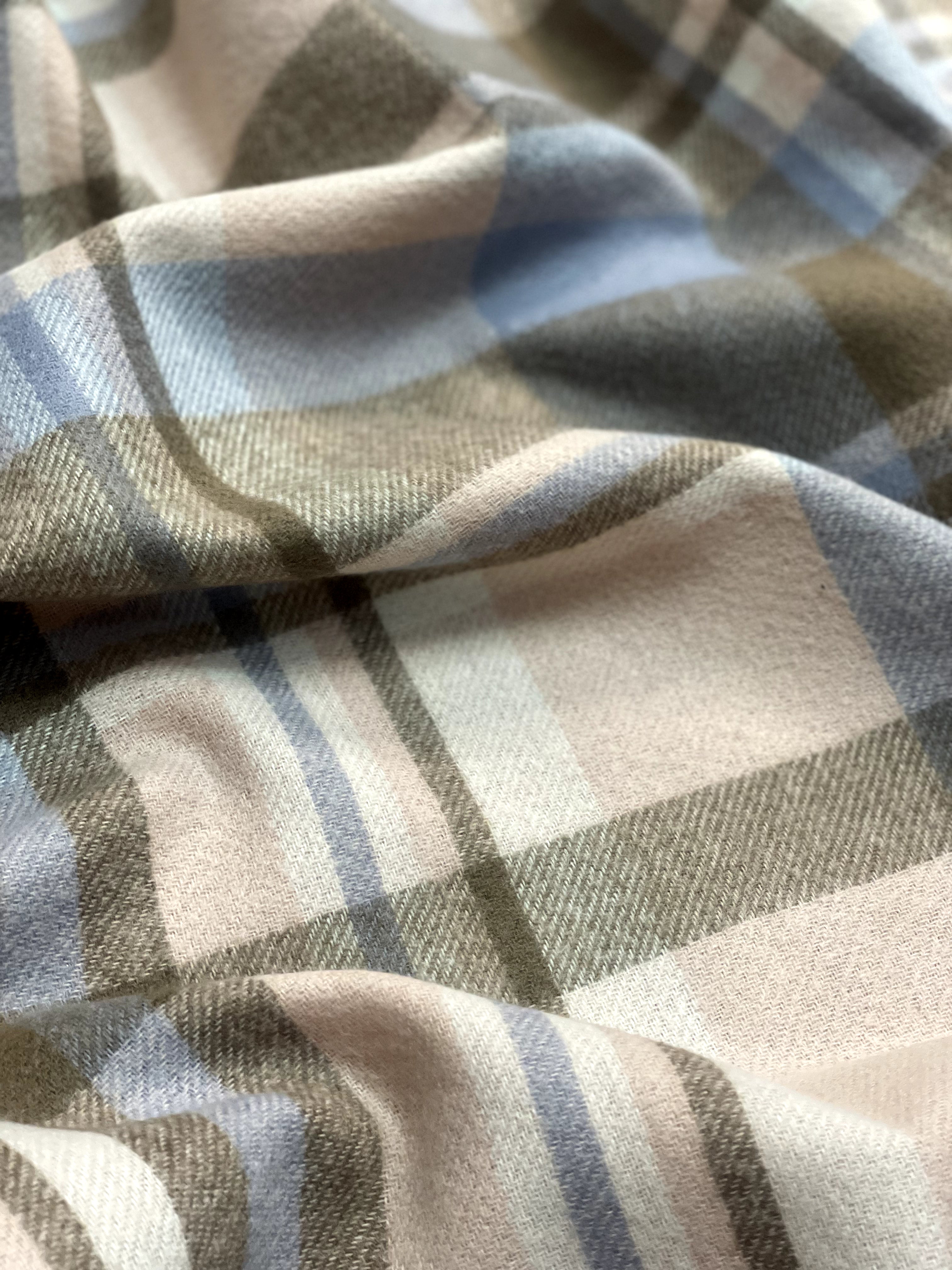 The Amritsar Store Blue & Beige Plaid Wool Scarf