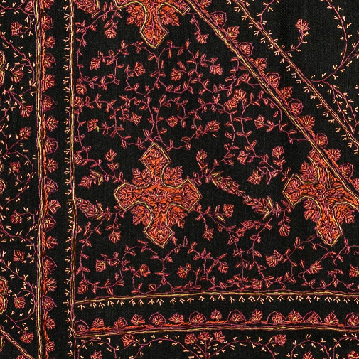The Amritsar Store Pashmina Shawl with Intricate Sozni Embroidery,Black